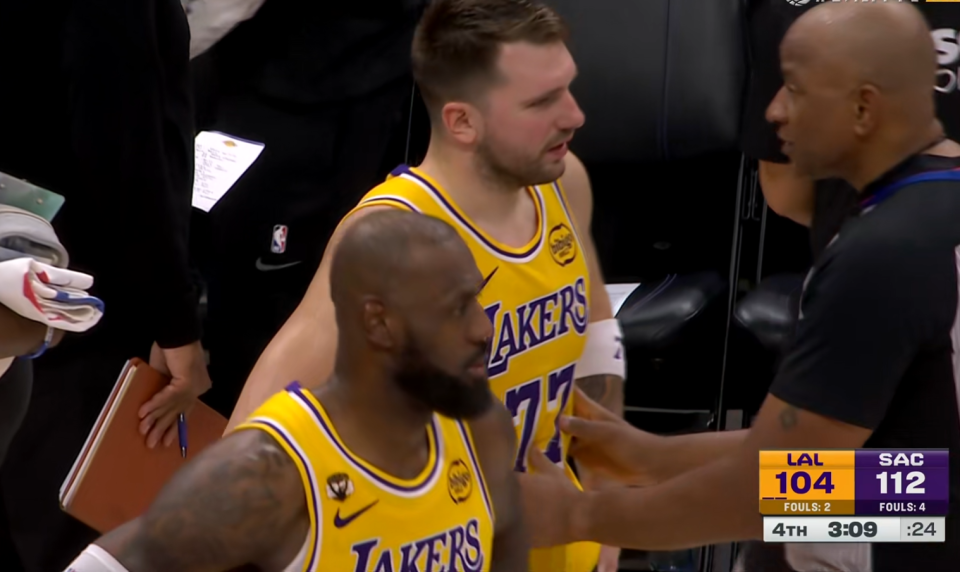 原本光看这个分差,湖人还是可以追一追的,当时他们已经追到了104比112,时间还剩下3分钟,此时落后8分,以东契奇今天的手感不是没机会。结果詹姆斯二话不说,在球队把分差追到个位数的时候,送上了耻辱表演。